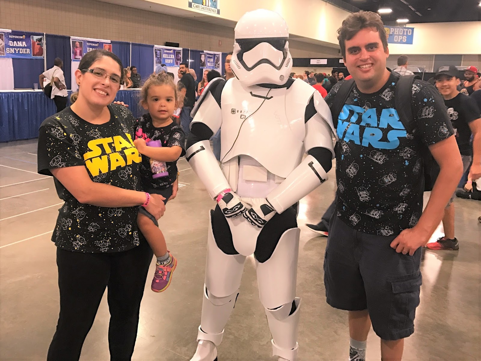 This year my husband and I bought matching Star Wars shirts for ourselves and our three-year-old. (The shirts were on sale at the Disney Store. Woot woot. *happy dance*) So we were extra ready to go to Supercon as a family for the first time in our daughter’s life.